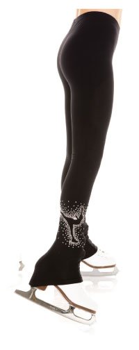 Bling leggings by Elite Xpression decorated with rhinestones of a figure skater doing a spiral.