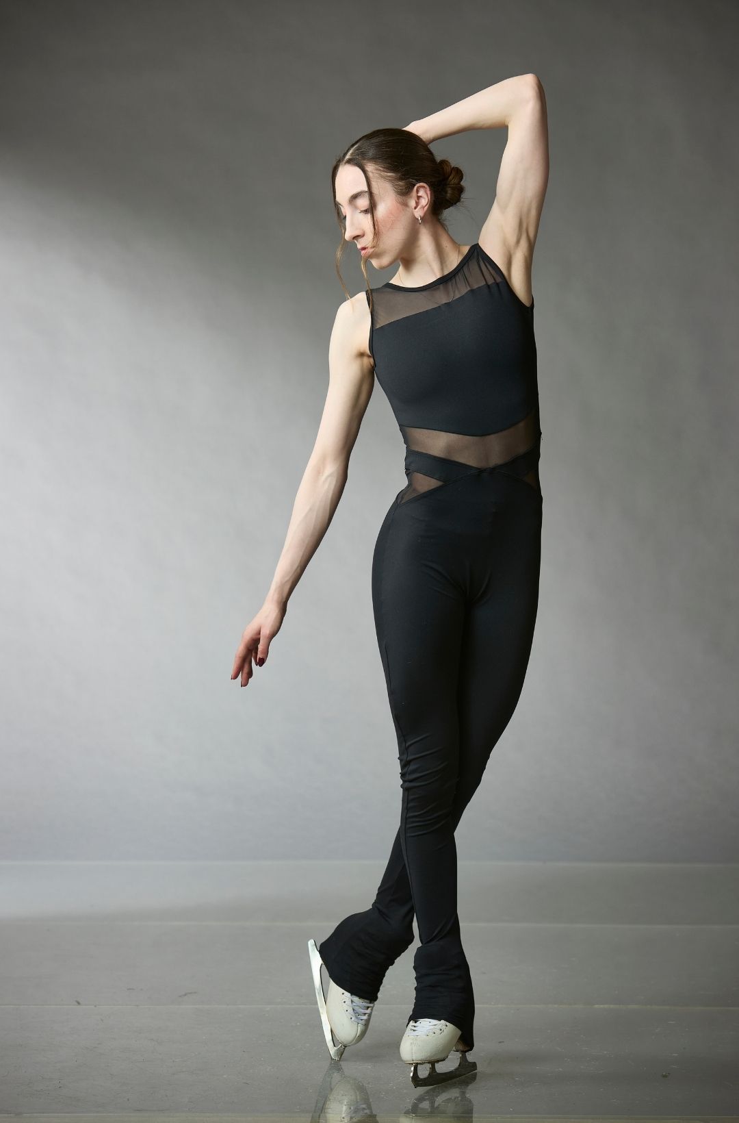 Sleeveless one-piece in Supplex with an open back covered in mesh and mesh inserts, from the Elite Xpression collection.