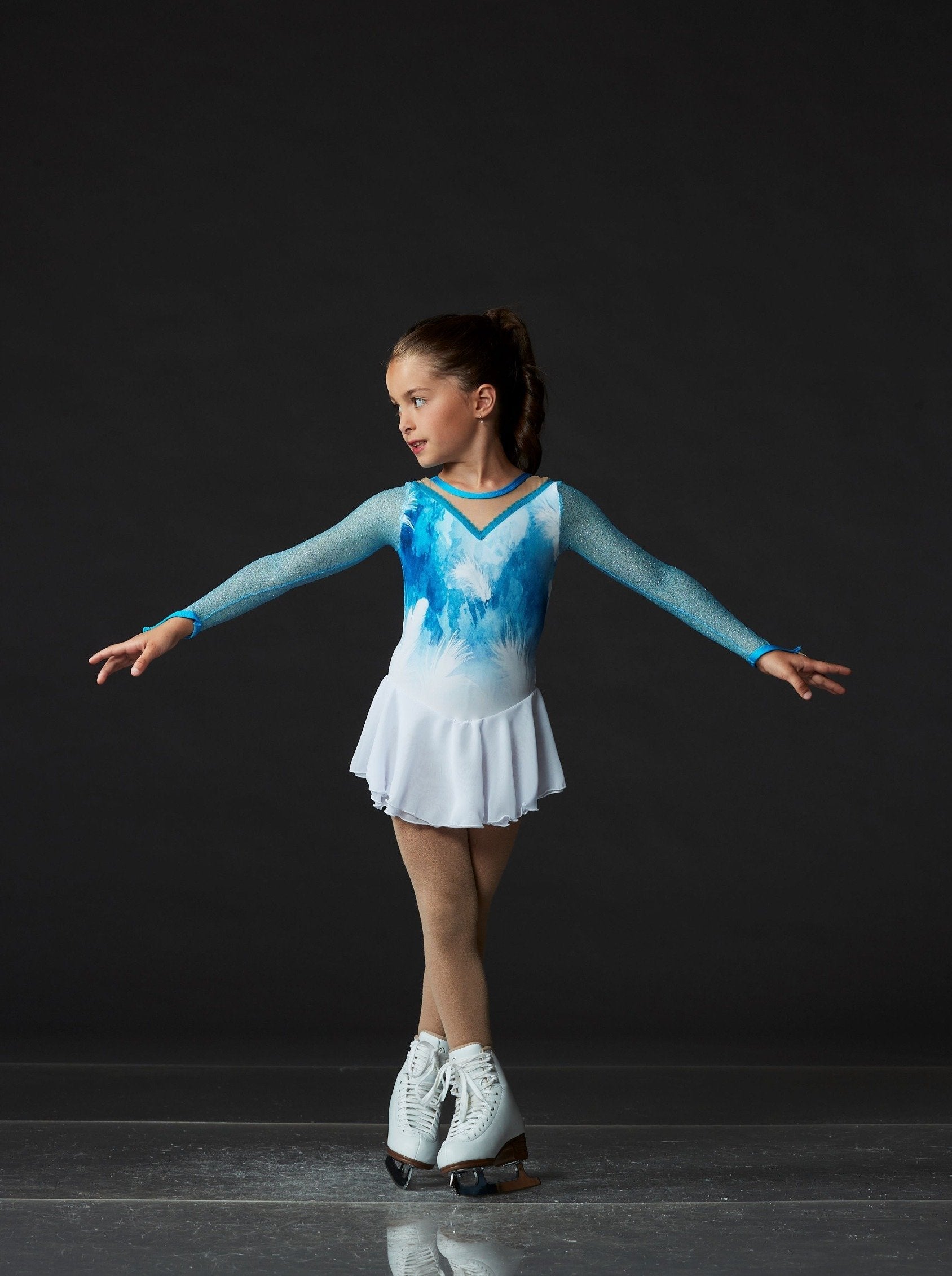 Elegant dress from the Elite Xpression collection, featuring a printed marbled turquoise bodice, long mesh sleeves, and a multi-layered chiffon skirt.