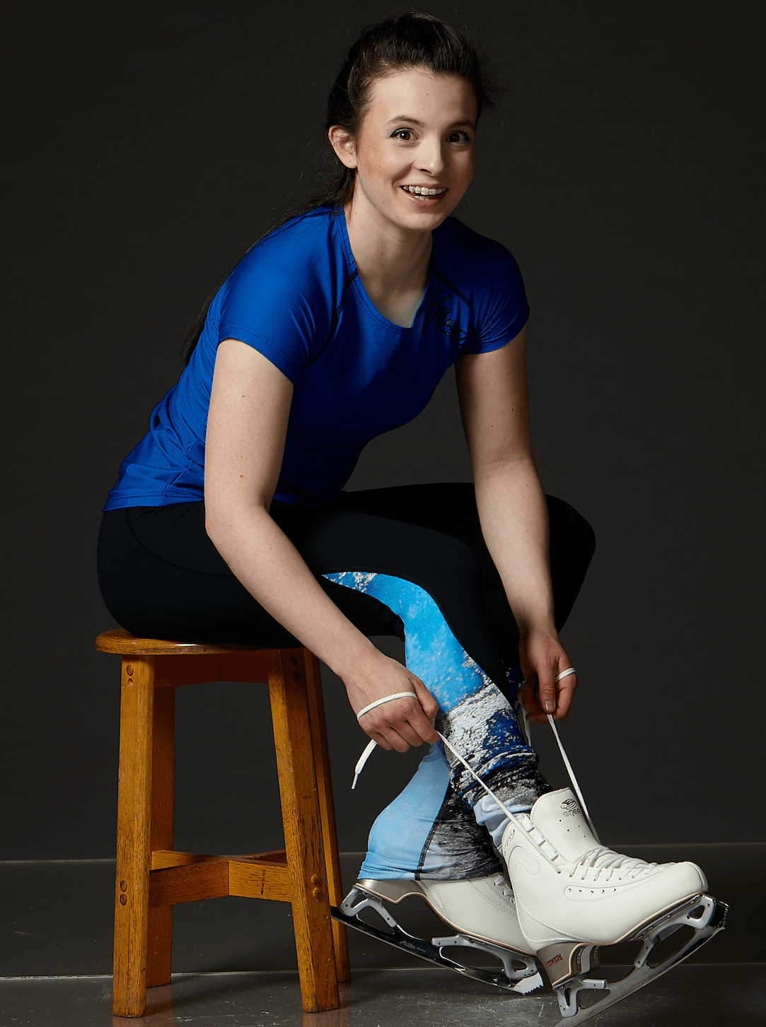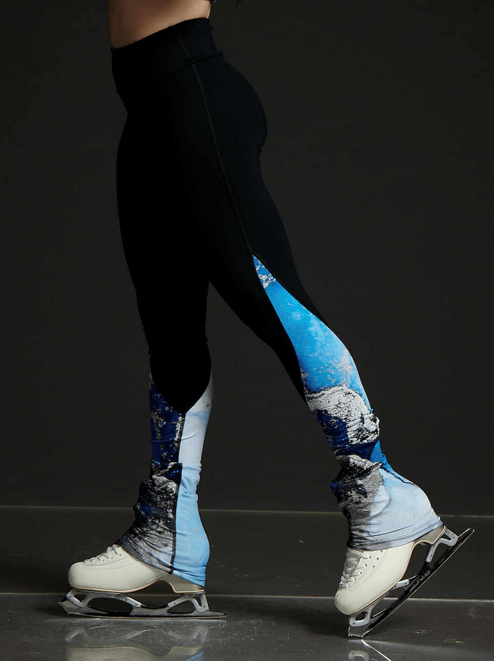 Black Supplex leggings with sublimated marbled blue inserts by Elite Xpression.