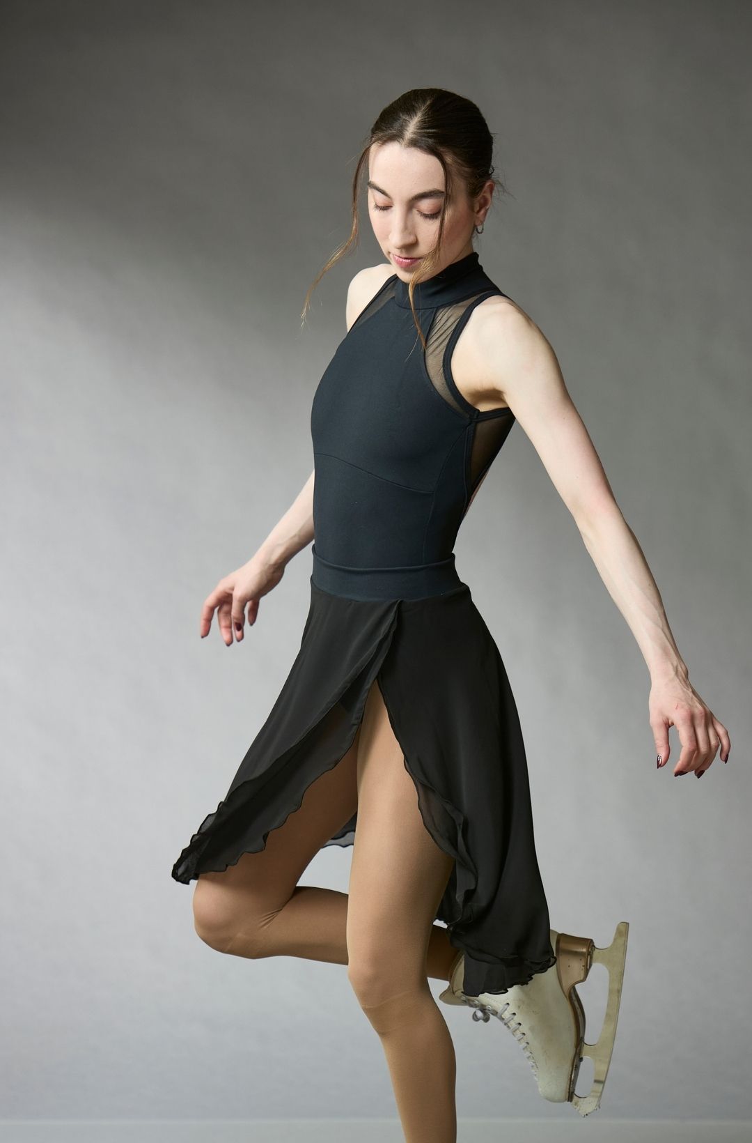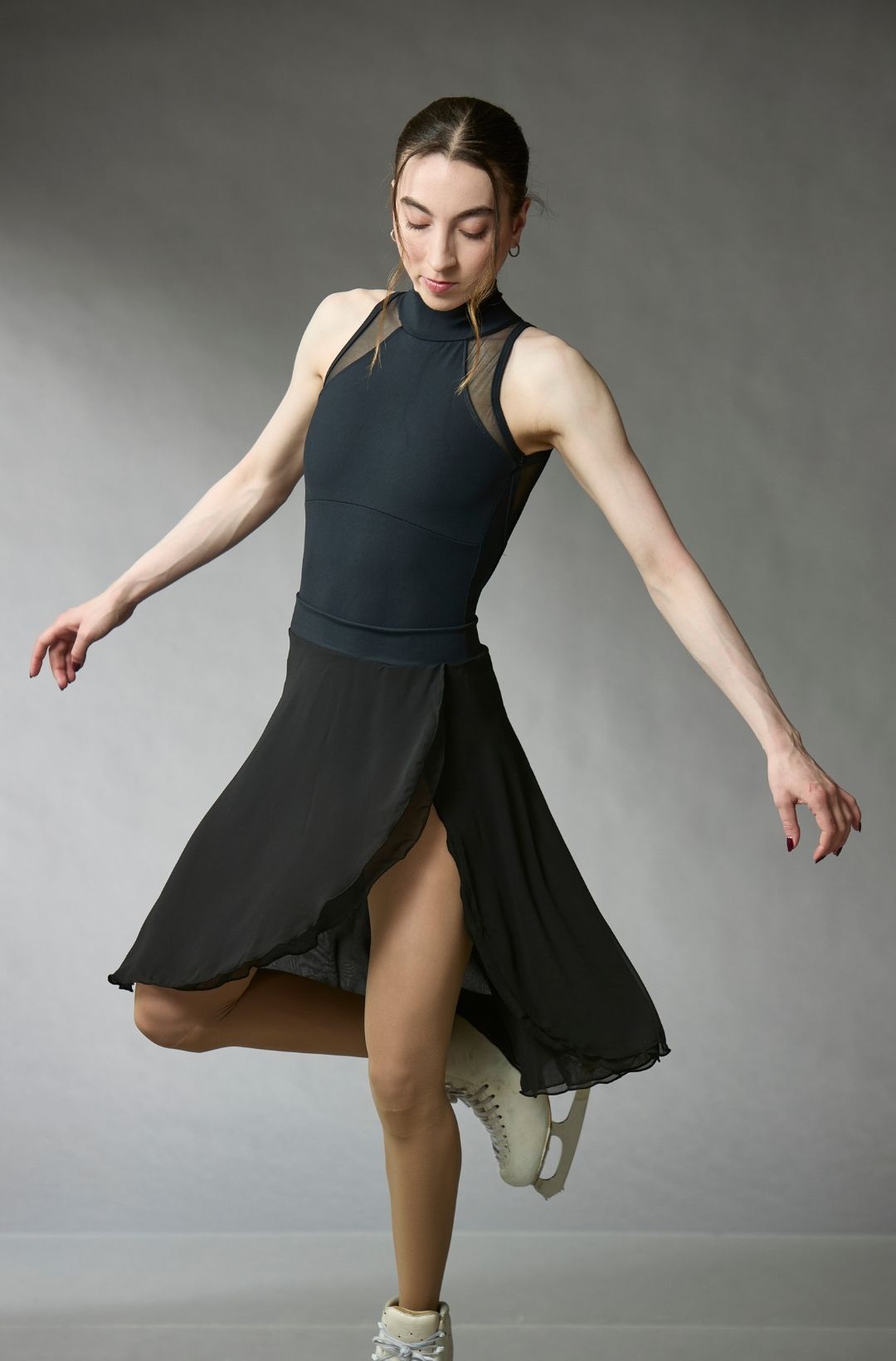 Basic black training chiffon skirt with two layers and a wide waistband by Elite Xpression.