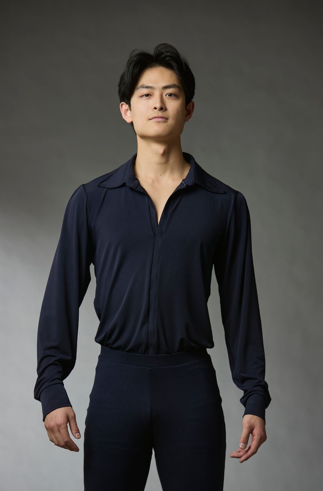 Stylish shirt, crafted in a soft fabric and featuring a classic collar and snap-button cuffs for a refined look and easy wear. Built-in briefs provide secure support during movement on the ice. Perfect for figure skaters seeking comfort, freedom of motion, and a professional appearance.