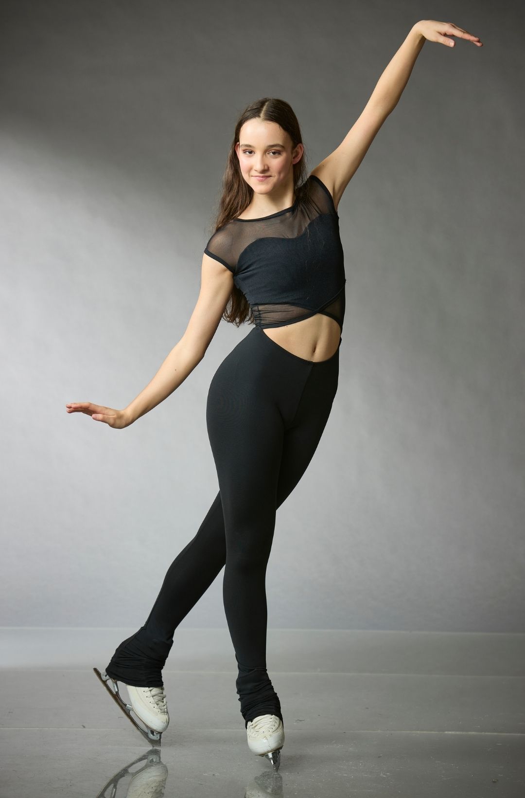 Elegant sleeveless one-piece with a stylish front opening and breathable mesh insert at the back, designed for comfort and performance. Part of the Elite Xpression collection.