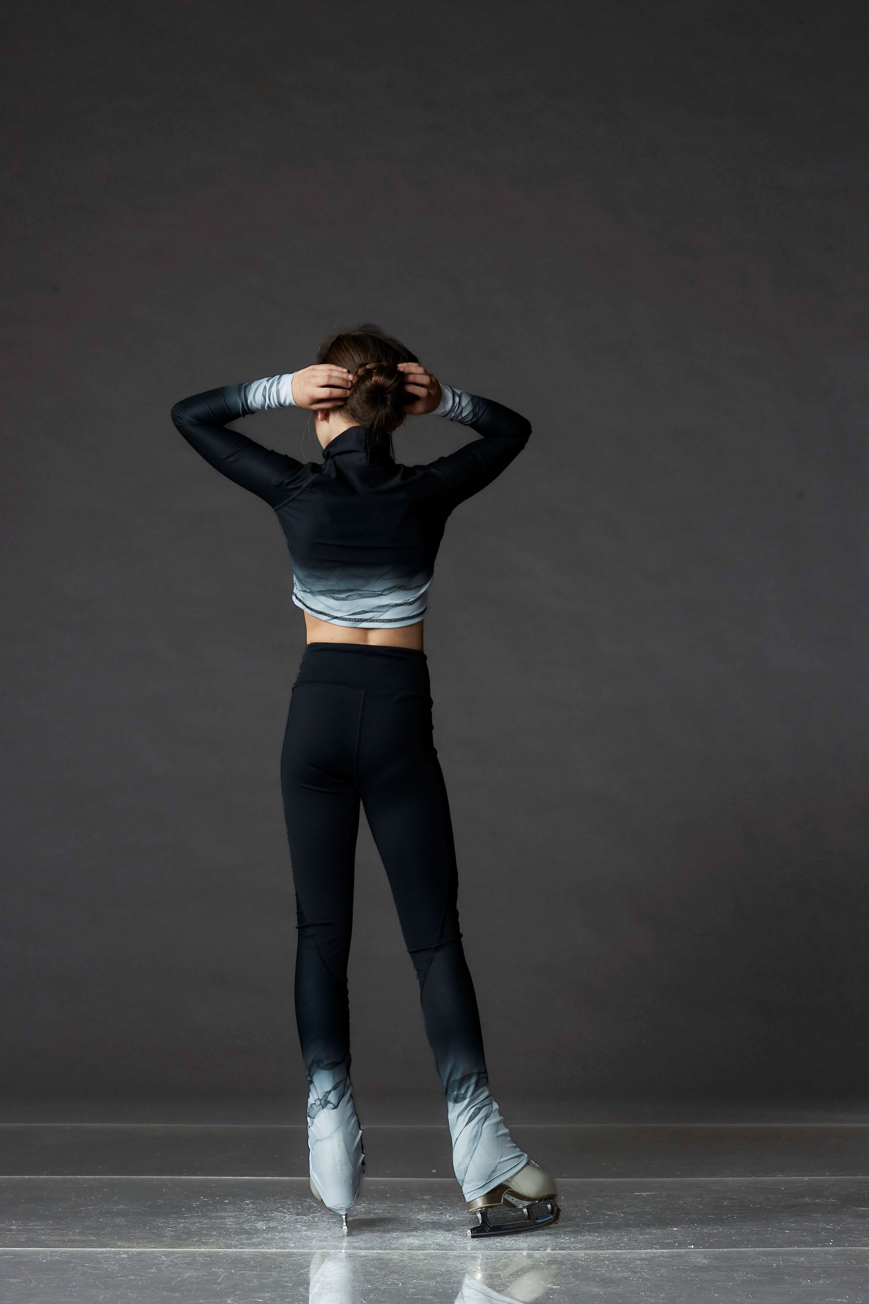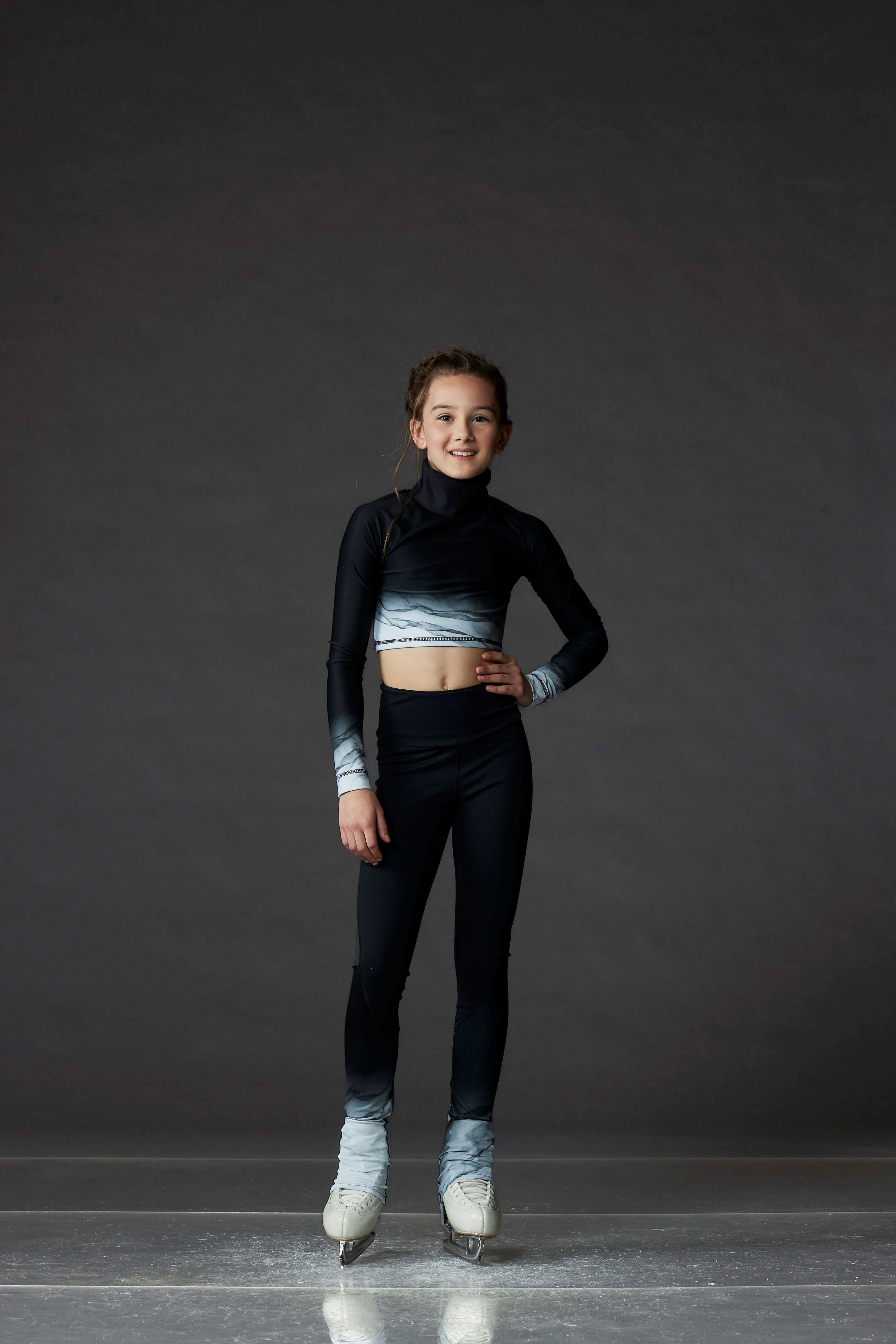 Cropped turtleneck crafted in Supplex featuring printed marbled grey detailing. Made by Elite Xpression.