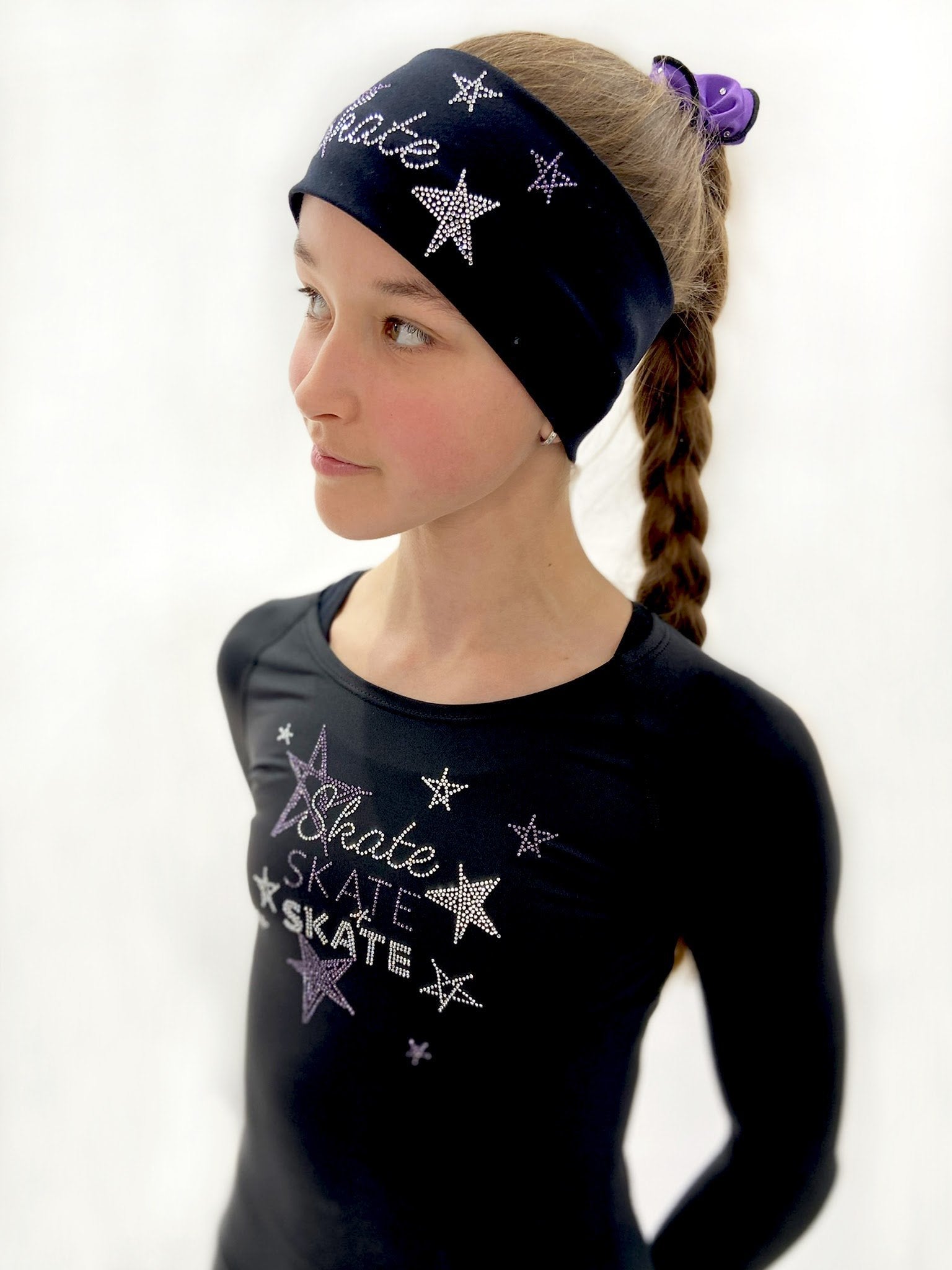 Bling figure skating training shirt decorated with purple rhinestones from the Skate Like A Star Collection by Elite Xpression.