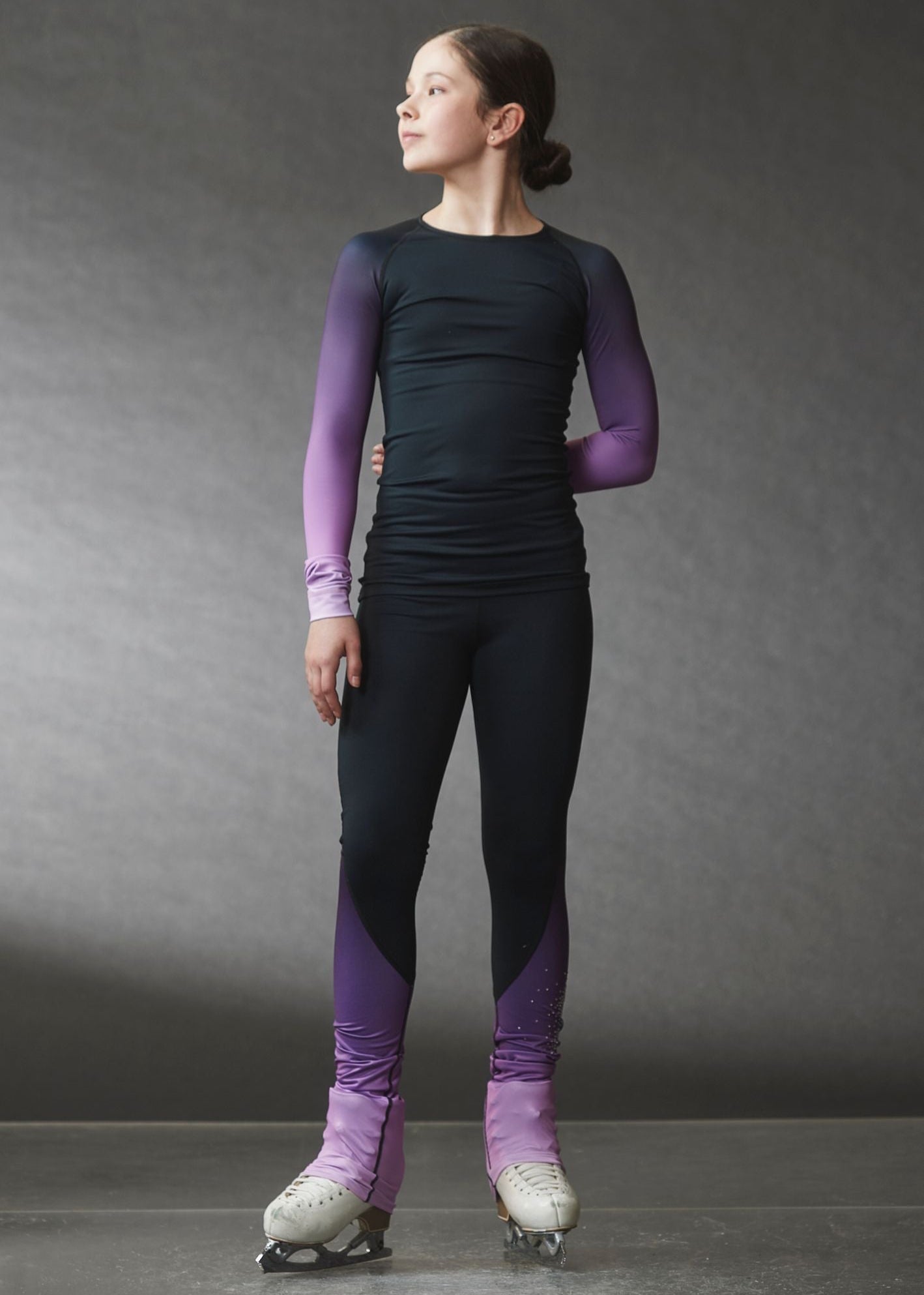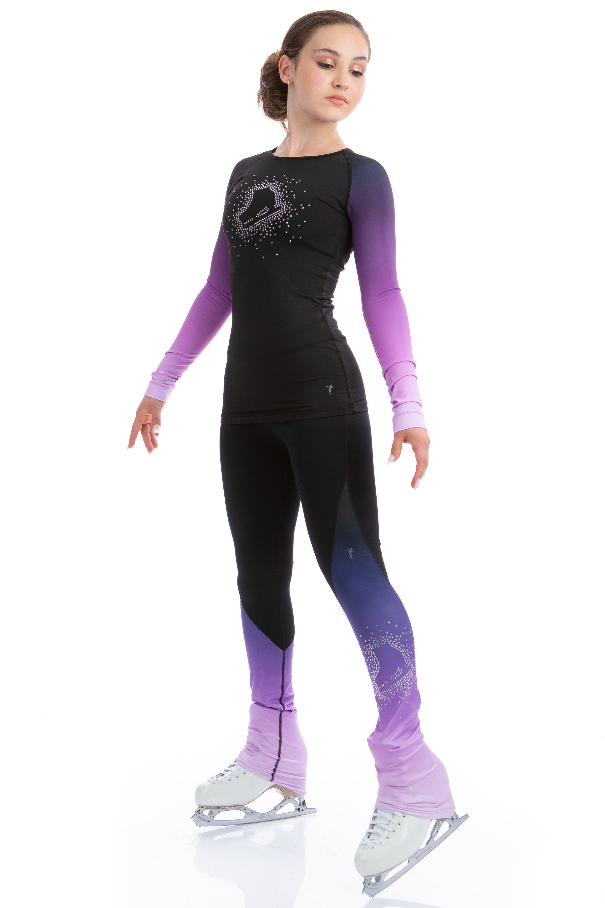 From Elite Xpression's Pastel Sprinkle Collection, black high-waisted figure skating training leggings featuring a lilac and silver beading accent on the left leg.