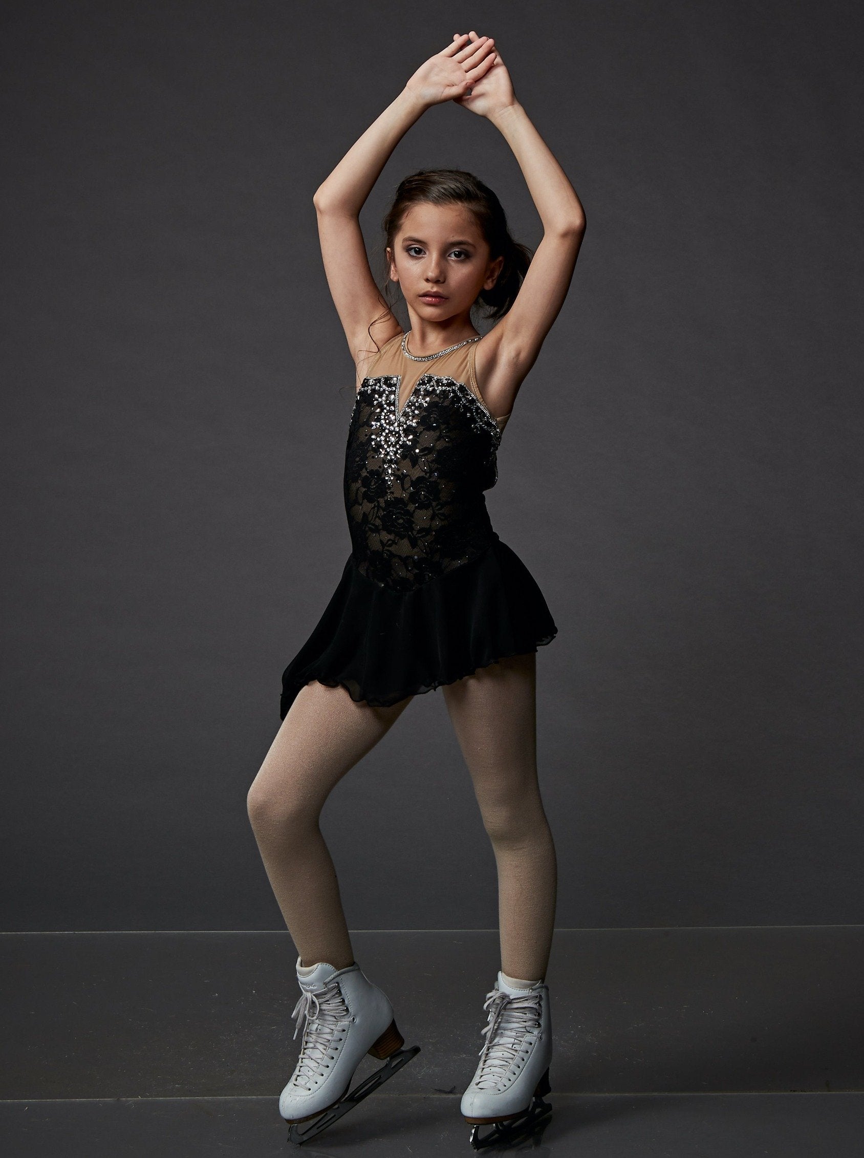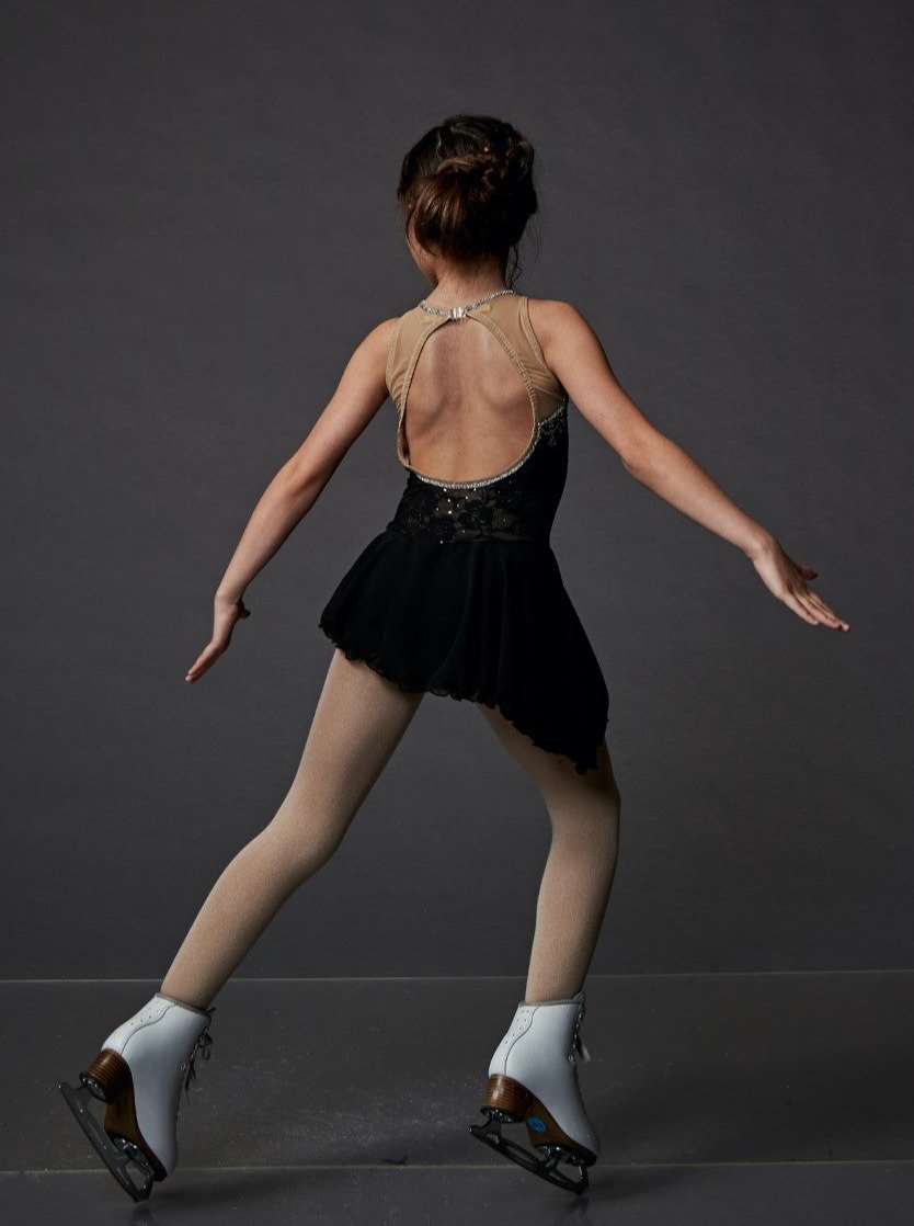 Black competition black dress with crystals and a chiffon skirt. From the Collection One of a Kind by Elite Xpression.