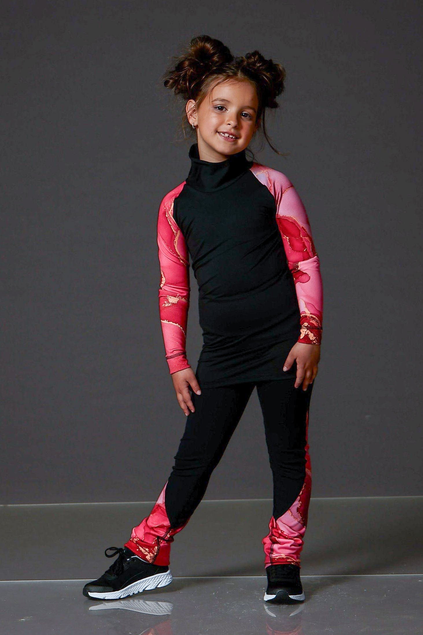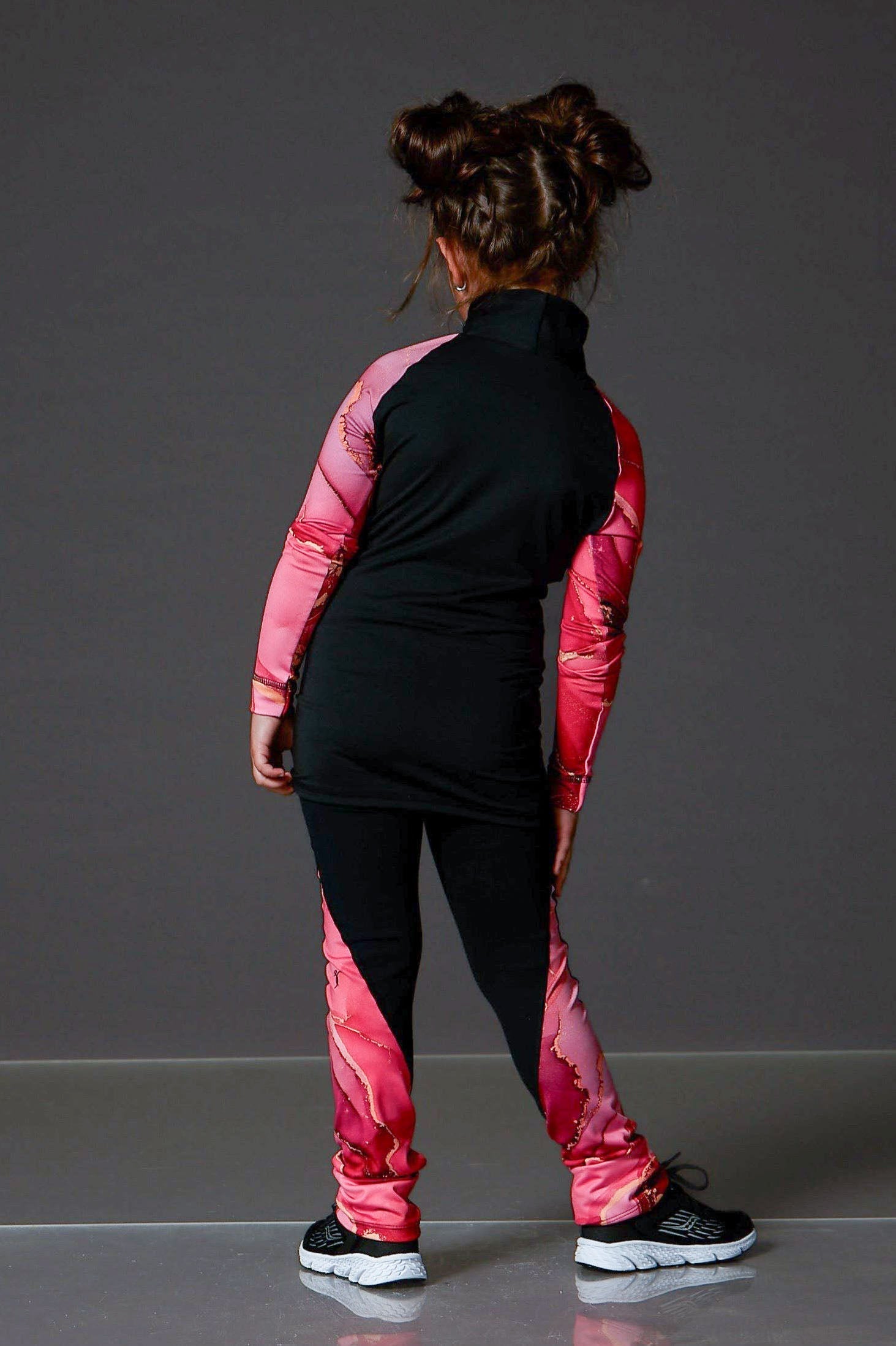 Black long sleeve training turtleneck with coral sublimated sleeves, crafted by Elite Xpression.