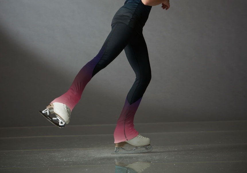 Legging en supplex noir avec inserts sublimés en ombré d'un rose foncé à un rose clair.